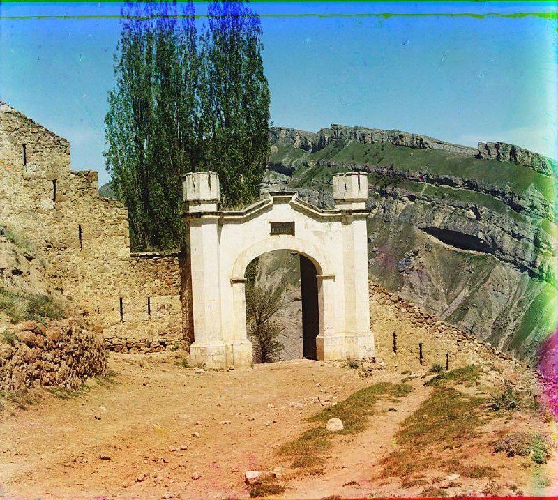С. М. Прокудин-Горский. Дагестан. В ауле Верхний Гуниб. Арка в память о пленении Шамиля. 1904 г.