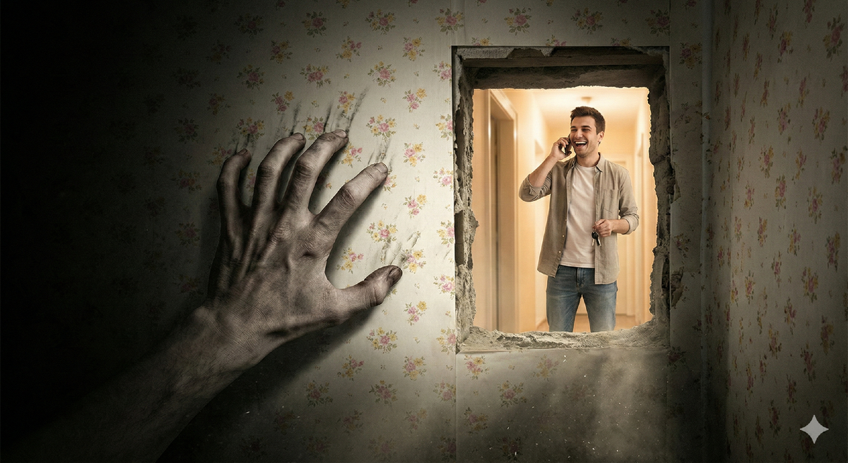Я вылетел в подъезд, сбежал по лестнице, не чувствуя ног, и распахнул тяжелую подъездную дверь, ожидая увидеть ночную улицу. Но вместо прохладного воздуха в лицо ударил запах увядающих лилий. Я стоял в коридоре квартиры номер 44. Напротив меня лежал перевернутый зимний ботинок с глубокой царапиной. Я обернулся — входной двери больше не было. Только глухая стена,