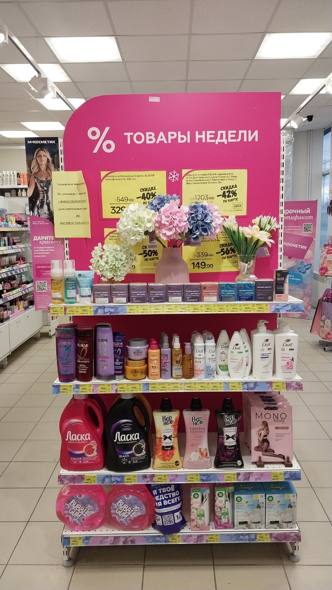 В Магнит Косметик началась новая неделя скидок, покажу вам витрину с товарами со скидкой по карте.