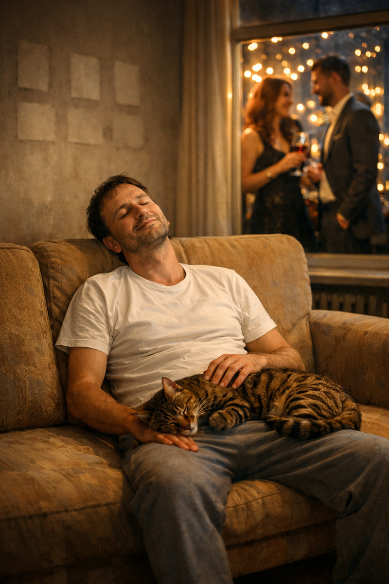 Алексей сел на диван. Степа прыгнул ему на колени. Он был грязным, Алексей был в чистой одежде, но это не имело значения. Кот устроился клубком, уткнулся носом в бедро.