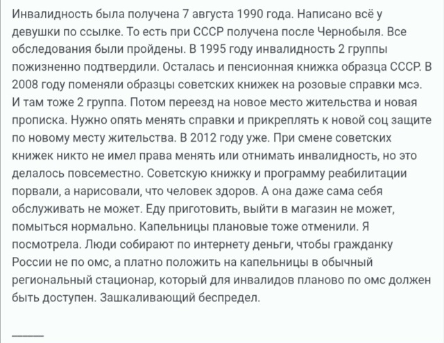 Потом стали говорить, что арестовали за то, что свой паспорт сжег. Но вот сотрудники мсэ #15 мои документы на мелкие кусочки порвали, и вместо оригиналов моих документов нарисовали что-то с потолка, что сами захотели, подменили мои документы на что-то с потолка, что ко мне, к моей личности, к моему статусу не имеет отношения. И я писала в СК, в Администрацию президента, везде, но этих сотрудников из мсэ #15 никто не арестовал. Более того, по чужим документам ко мне обращаются и меня лишают льгот и медицинской помощи на основании подделки документов. А восстанавливать мои подлинные документы никто не собирается. Тут очевидная подтасовка документов. Уголовное дело. И нет ареста.