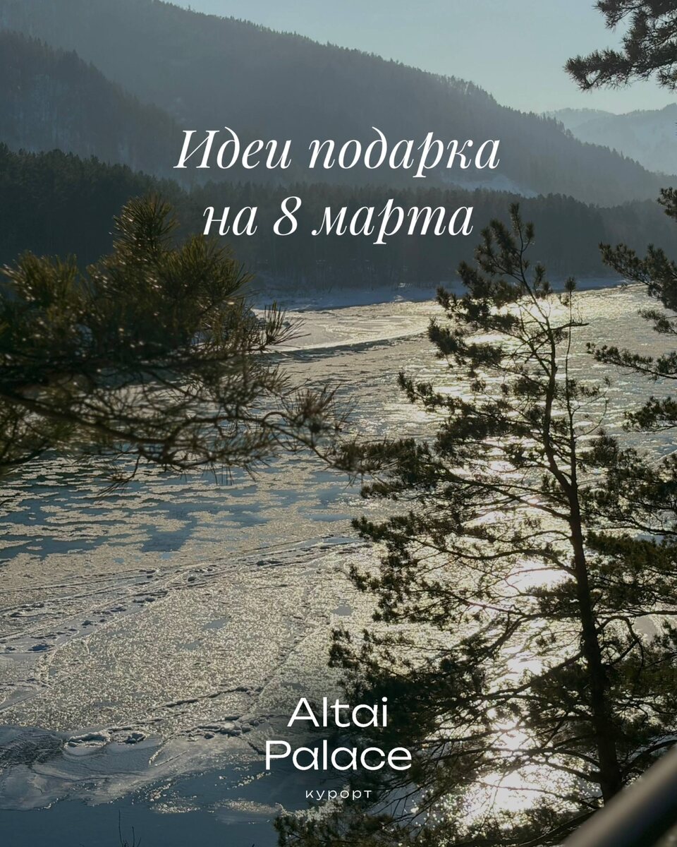 1. Выходные в комфортабельных номерах отеля или уютных шале Altai Palace 2. Подарочный сертификат в Medical Spa (его действие распространяется на любые услуги центра красоты и здоровья) 3. Парение в русской бане с сибирским чанов — отсюда открывается впечатляющий вид на парк маралов 4. Праздничный ужин и вечернее шоу дуэта АСТЕРО 8 марта в ресторане «Ласточки» Дарите эмоции и впечатления, которые надолго останутся в памяти! Забронировать подарок можно по номеру 8-903-919-95-47