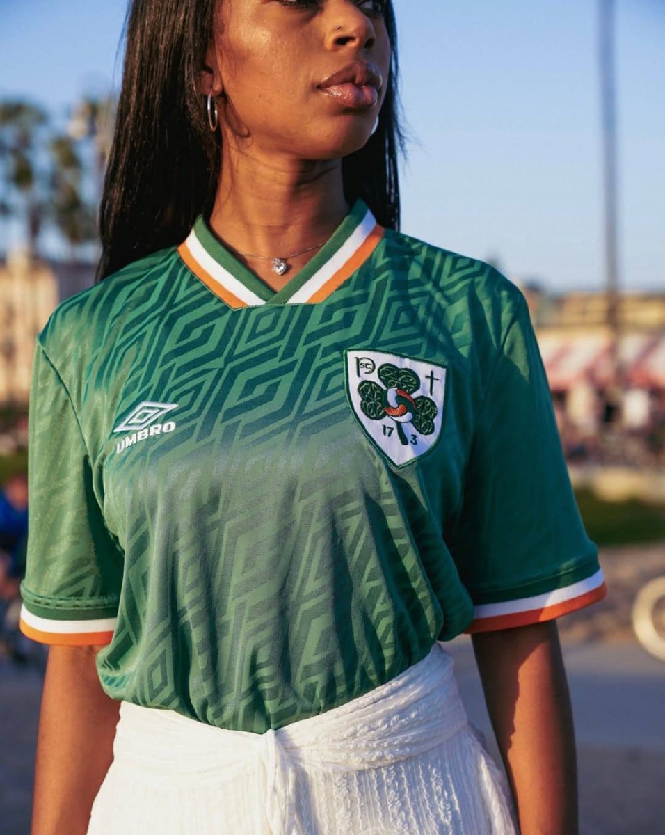 Ее переосмысляют в разных странах, адаптируют под себя. Через музыку, поэзию. Она вышла далеко за пределы острова. В umbro решили интерпретировать эту культуру в новой коллекции. А посыл такой: коллекция про людей, которые несут ирландский стиль по всему миру. Не знаю, будет ли это издание в игровой версии, но стоит отметить — британский бренд сделал ее в очень достойном исполнении. @conceptfootball