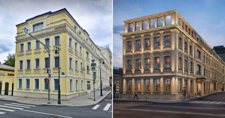 На Остоженке пытаются довести до ума один из самых странных долгостроев. Дом 12/1, строение 3, уже больше десяти лет пытаются превратить в элитный клубный проект, но пока из этого ничего не вышло. Теперь появились новые планы по реконструкции. Само здание — дореволюционное, XIX века — пустует еще с середины 1990-х. В 2013 году его вовлекли в редевелопмент: планировалось сделать клубный жилой дом всего на 12 квартир. Стройка растянулась почти на десять лет, и хотя к 2023 году работы формально завершились, дом так и не получил разрешение на ввод в эксплуатацию. С тех пор он стоит закрытым, фасад местами уже разрушается. Теперь появилась новая версия проекта — ее опубликовал канал «Стройки — и точка». По рендерам видно, что фасад собираются полностью переосмыслить: его планируют облицевать натуральным камнем, придав дому более «роскошный» вид в духе современных ЖК Остоженки. Это не единственная архитектурная интрига в этом месте. Еще в прошлом году мы писали, что обсуждается проект застр