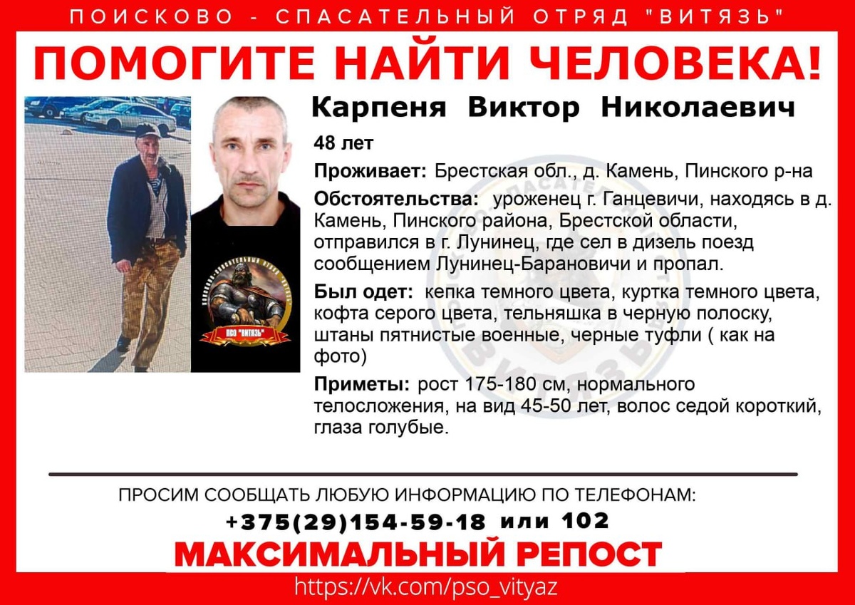 Помогите найти! Мужчина сел в дизель-поезд Лунинец-Барановичи и пропал. Посмотреть