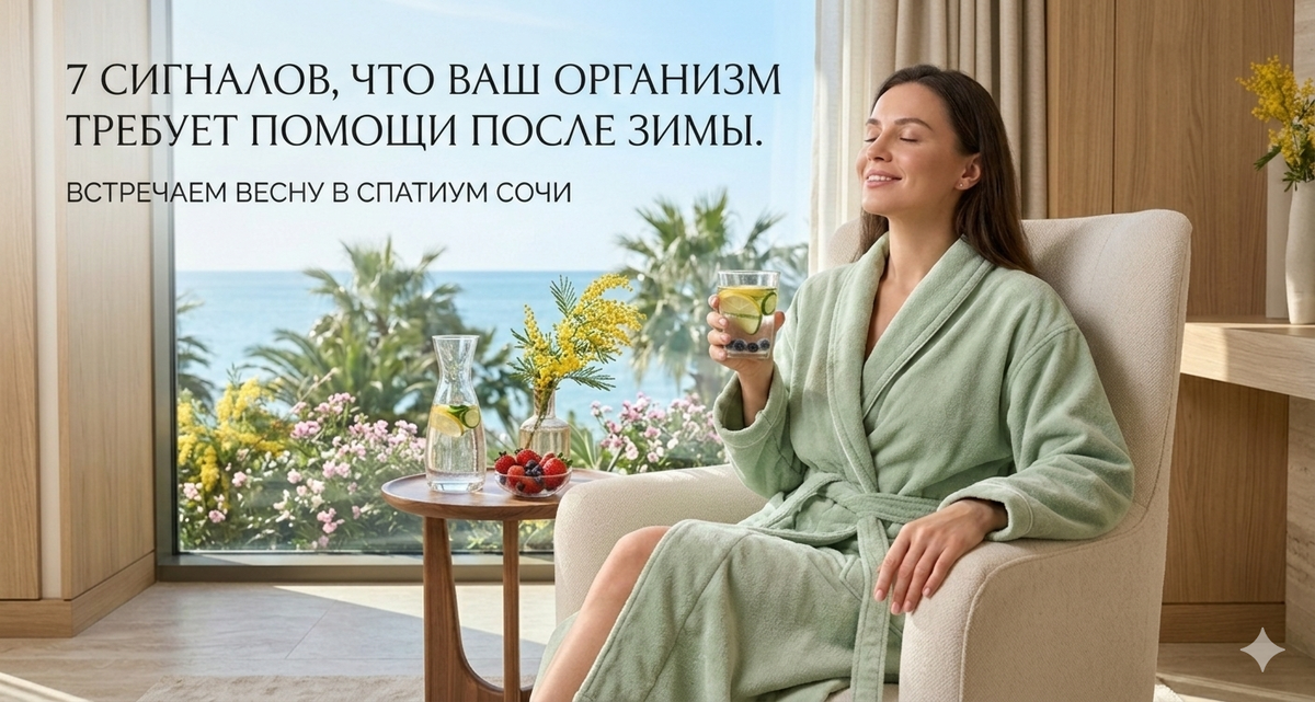 Весенний детокс в оздоровительном центре “Спатиум” Сочи - комплексное очищение организма после зимы без диет и таблеток. Зима закончилась, а усталость, отёки, тусклая кожа и туман в голове остались? «В тебе накопились токсины» - это не просто строчка из песни. Это реальность для большинства жителей мегаполисов после холодного сезона. В центре “Спатиум” https://sochidetox.ru Сочи мы ежедневно видим эти симптомы и убираем их причину, а не маскируем последствия. Метаболизм замедлен, лимфа застаивается, микробиом нарушен, витамин D и серотонин на минимуме. Вот 7 главных сигналов, что ваш организм требует детокса после зимы. Сигнал 1. Постоянная усталость и отсутствие энергии. Зимой снижается выработка витамина D из-за дефицита ультрафиолета, замедляется метаболизм и накапливаются продукты обмена веществ. Организм тратит все ресурсы на обогрев, а не на восстановление. Сигнал 2. Тусклая сухая кожа, высыпания. Холодный воздух и отопление разрушают гидролипидный барьер, а накопленные в лимфе
