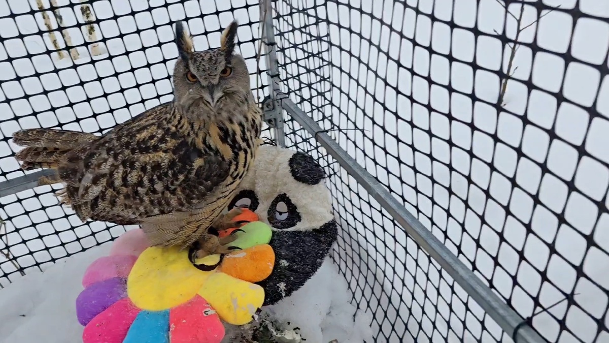 Я сейчас днём забираю сову Ёлку в дом, где она спокойно сидит, не переживая ни о каких ямках.