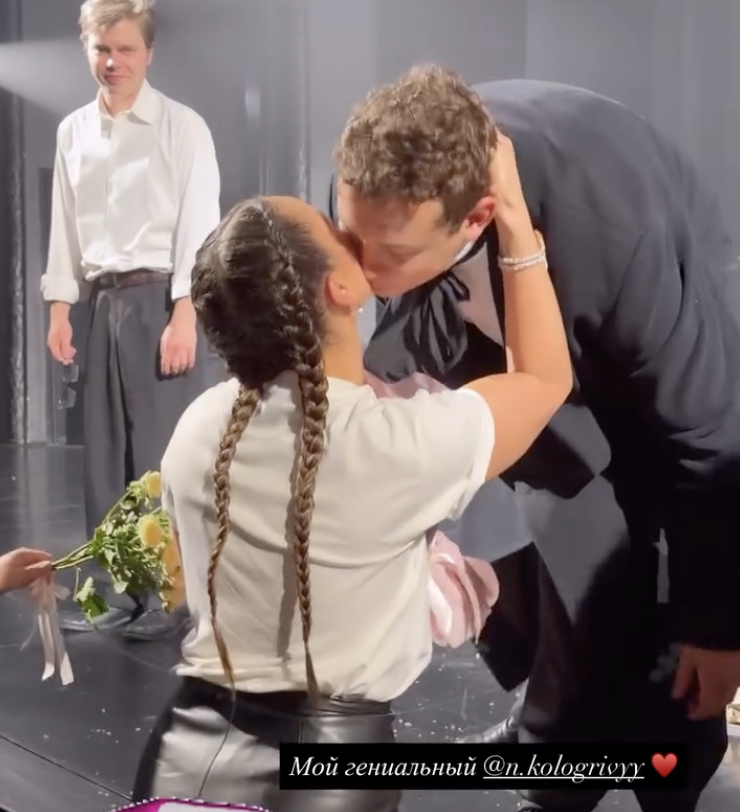 Ольга Бузова посетила спектакль «Маяковский. Я сам» с участием Никиты Кологривого. Телеведущая показала, как вручает коллеге букет в финале постановки. Она обняла его и поцеловала. «Мой гениальный», — высказалась певица об актере. Затем она посетила его гримерку и сняла совместное видео. Звезды обнимались и улыбались, глядя в камеру. Звезда фильма «Август» отметил, что пользователи сети уже пишут о том, что он как-то особенно смотрит на певицу, и подозревают их в романе. Бузову рассмешили эти слова. «А мне кажется, они друг другу подходят», «Ой, хочу, чтобы Оля была счастлива. Надеюсь, они будут вместе», «Какие же вы милые», «Пойте вместе, у вас очень красивый дуэт», «Такие лапочки. Очень круто смотритесь вместе», «Хоть бы вы были вместе», «Ой, ну чего вы такие красивые! Я не знаю, Кологривый свободен ли, но если да, Олечка, задумайся», «Вот такой нужен Оле», «Такие красивые! Будьте вместе. Красивая пара», «Давайте пожелаем им быть вместе», — писали поклонники в комментариях. В конце ф