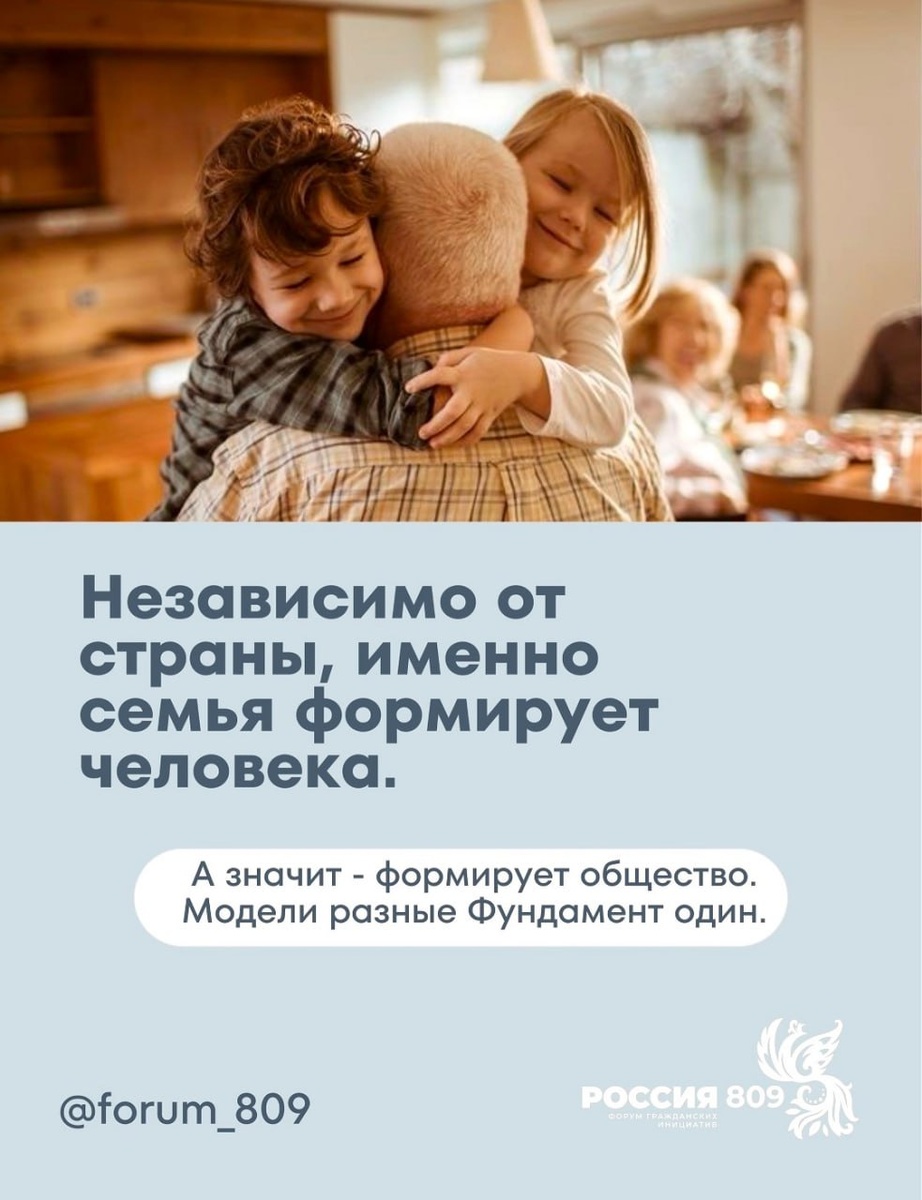 Где-то доминирует иерархия, где-то ценится личная свобода, где-то важна коллективность, а где-то – индивидуальный путь. Но есть то, что объединяет все культуры: семья — первая социальная среда, где формируются такие качества, как уважение, ответственность, трудолюбие, отношение к старшим и детям. Будущее общества закладывается не в кабинетах, а в доме — через воспитание и семейные ценности. Какая модель воспитания кажется вам ближе и почему? #указ809 #Россия #закон #страна #развитие