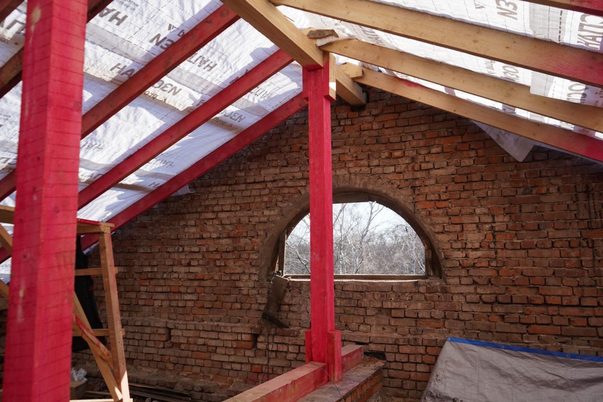 Новодолжанская продолжаются Дом №1 на улице Новодолжанская, пострадавший 3 ноября 2025 года от удара ВСУ, продолжает восстанавливаться. Работы на этом объекте проводит шеф-регион Красноярский край. Ход восстановительных работ в МКД приехали проинспектировать руководитель делегации Красноярского края в Свердловском муниципальном округе Игорь Мирошников и ведущий инженер отдела капитального строительства КГКУ «УКС» Артем Варашев. Ранее здесь специалисты расчистили завалы, восстановили кирпичную кладку внутренних и наружных стен пострадавших от удара. Полностью заменили все окна в количестве 32 штук. Восстановлена кирпичная кладка парапета. «На данный момент готовность стропильной системы составляет 95%. Во избежание проникновения осадков – стропильную систему покрыли влаговетрозащитным материалом. Устанавливается обрешетка», - прокомментировал Артем Варашев. Он также добавил, что лес, используемый под стропильную систему, проходит обработку огнебиозащитой, которая предотвратит от др