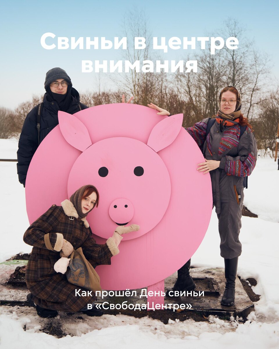 В «СвободаЦентре» живут свиньи, и у каждой своя история спасения. Фриду забрали из мексиканского бара в центре Петербурга. Дуня, Боня и Феня — жертвы нелегальных разводчиков мини‑пигов. Марио — малыш, которому бывшие хозяева сломали ноги и грозились сделать шашлык. Лею просто бросили, а Крошка Би родилась у свинки, спасённой с заброшенной фермы. Ради них 1 марта в приют приехали 78 человек. Погода выдалась холодной — моросил дождь. Но это не остановило гостей. Они приезжали семьями, с друзьями, поодиночке. Главным развлечением стали Свиные неолимпийские игры. Гости бегали, прыгали, рылись в опилках в поисках кладов. Победителям достались призы, а виновникам торжества – много вкусняшек. Мы показывали жизнь свиней на фермах с помощью VR-технологий — для многих это стало первым честным рассказом о том, что бывает с теми, кому не повезло быть спасёнными. На викторине про свиней делились фактами: свиньи умнее собак, узнают своё имя, помнят обиды годами и даже могут играть в видеоигры. А