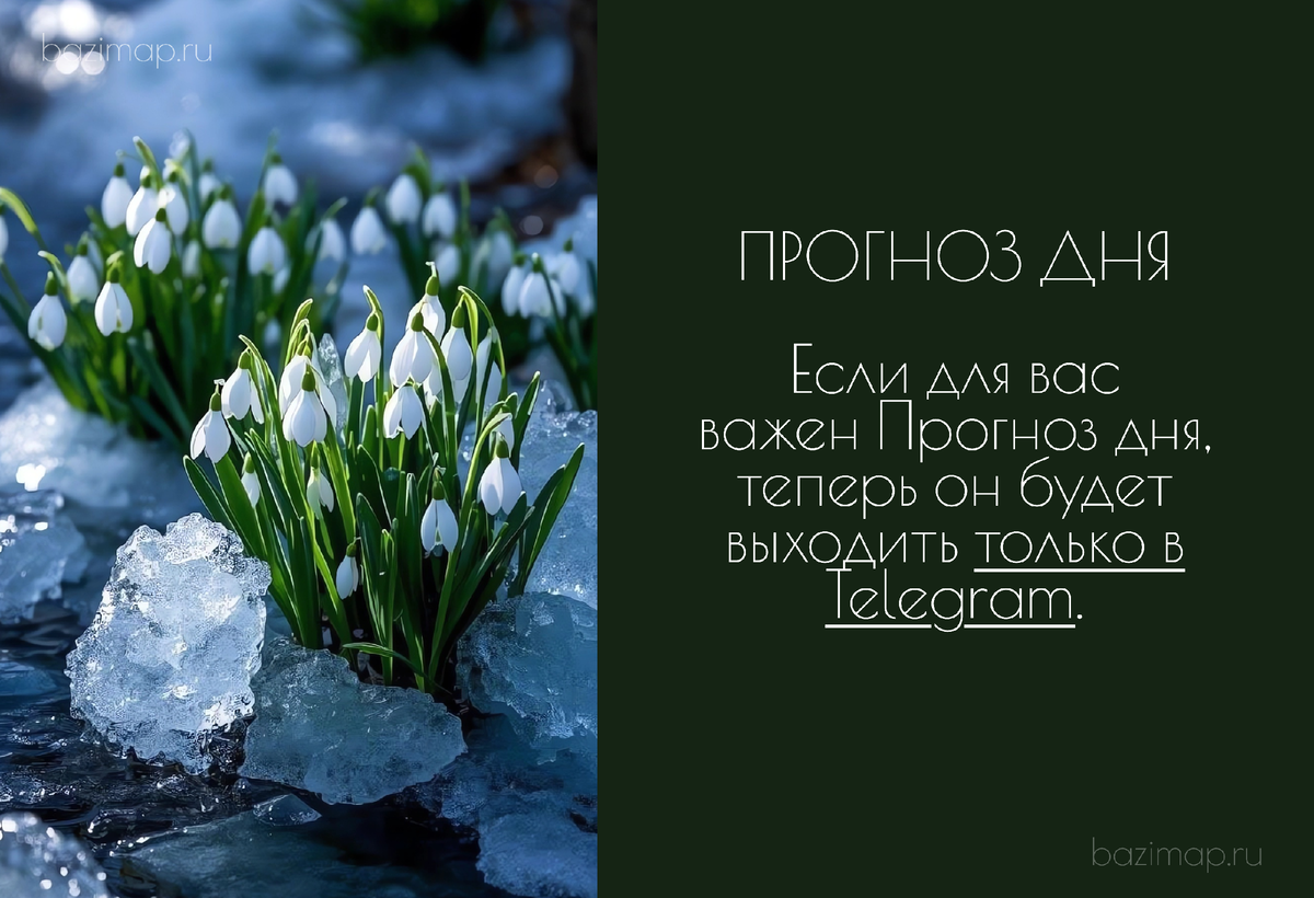 Если для вас важен Прогноз дня, теперь он будет выходить только в Telegram. Именно там будут все ежедневные прогнозы, без пропусков и с быстрым доступом. В Дзене по-прежнему останется основной полезный контент: статьи с сайта и видео из ВК — всё самое ценное, но уже без ежедневных прогнозов. Окончательно прогнозы уйдут из Дзена ориентировочно в конце февраля — начале марта. Точную дату я ещё напишу, чтобы вы спокойно успели перейти и ничего не потерять. Bazimapru | Telegram | VK | 2026