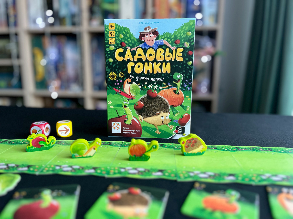 Вот уже несколько дней мой младший сын не может оторваться от «Садовых гонок». Это первая игра со скрытой информацией и блефом, которую он пробует, поэтому ему это в новинку, и каждый раз, когда он не угадывает, за какого персонажа я играю, он говорит, какая я коварная обманщица, и просит новую партию. Игра невероятно проста: вы вытягиваете жетон персонажа, никому не показывая. Ваша задача – первым привести своего героя к финишу. Ставите фигурки на стартовую позицию и бросаете кубики, на них изображены участники гонки. А затем выбираете одну из выпавших граней и продвигаете героя вперёд. Мало того, что вы должны привести своего персонажа первым, вы ещё и не должны показать, за кого болеете. В противном случае другие участники смогут его откинуть подальше, потому что на кубике есть значок «-1 шаг». Гонка завершается, когда один из героев приходит к финишу. После этого игроки вскрывают свои карточки и показывают, за кого болели. В игре есть и немного усложнённый режим. В нём участки доро