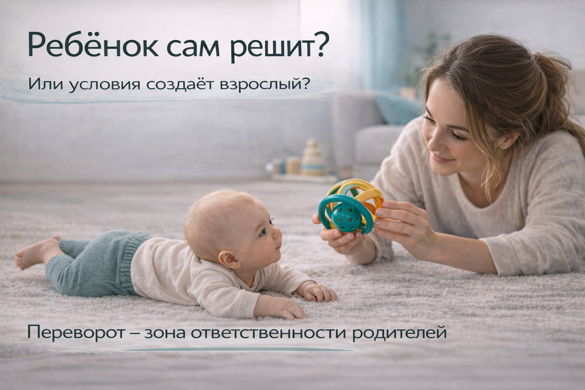 Позволяет “подождать”. Но давайте разберёмся профессионально. В этом возрасте ребёнок не принимает решений в привычном взрослому смысле. Он реализует врождённую программу двигательного развития — моторный онтогенез. И реализует её настолько, насколько: Не «он решил».