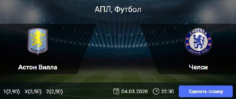 ) Статистика Астон Виллы: В восьми последних матчах с участием «Виллы» фиксировалось не более двух взятий ворот. Атака бирмингемцев не может отличиться больше одного раза уже в пяти турах Премьер-лиги подряд. В 6 из 7 последних домашних встреч АПЛ команда неизменно пропускала ровно один гол. Статистика Челси: В шести последних матчах чемпионата с участием «Челси» забивали обе команды. «Синие» поражали ворота соперников минимум дважды в 5 из 7 предыдущих игр АПЛ. Высокая результативность (три и более гола) фиксировалась в 5 из 6 последних поединков лондонцев. 🎯 Обе забьют (Да) 🎲 кф (1,63) 🎯 Фора 2 (0) 🎲 кф (1,77) 👉 СДЕЛАТЬ СТАВКУ 🎁 ФРИБЕТ WINLINE - 3000₽ (промокод: BETWIN) 👉 СМОТРЕТЬ ПРОГНОЗ