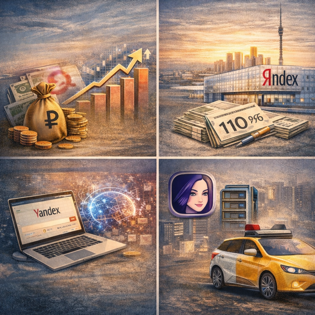 На прошлой неделе Яндекс представил сильный отчет за 4 кв. 2025 г., который был лучше наших ожиданий и консенсуса. В этом посте поговорим про результаты за 2025 г., ожидания менеджмента на 2026 г., а также подробнее рассмотрим достижения Яндекса в сфере ИИ. Яндекс выпустил сильный отчет за 4 квартал 2025 • Результаты по группе Выручка выросла на 28% г/г до 436 млрд руб. EBITDA выросла на 80% г/г до 88 млрд руб. Рентабельность выросла с 14% в 4 кв. 2024 г. до 20%. Скорр. чистая прибыль выросла на 70% г/г до 54 млрд руб. • Поисковые сервисы и ИИ Сегмент продемонстрировал ожидаемое замедление роста выручки на фоне снижения рекламных бюджетов: рост составил 4% г/г до 163 млрд руб. EBITDA составила 69 млрд руб. (+0% г/г). Рентабельность снизилась с 44% в 4 кв. 2024 г. до 43%. • Райдтех Выручка сегмента выросла на 23% г/г до 82 млрд руб. EBITDA выросла на 47% г/г до 33 млрд руб. Рентабельность выросла 5.5% до 7.6% от GMV преимущественно за счет роста комиссий агрегатора такси. • Электронная