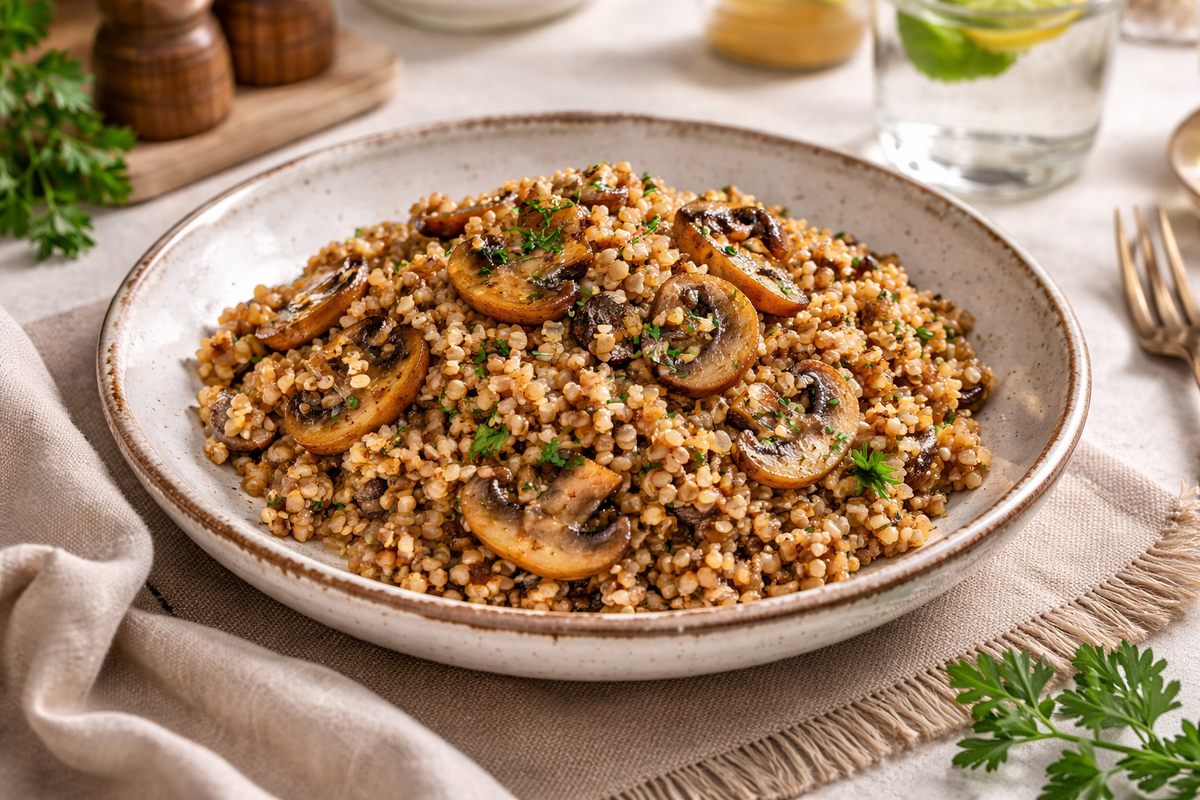 Из самых обычных продуктов получается полноценный ужин. Если всё сделать правильно, гречка остаётся рассыпчатой, а грибы дают тот самый глубокий аромат, ради которого это блюдо и готовят.