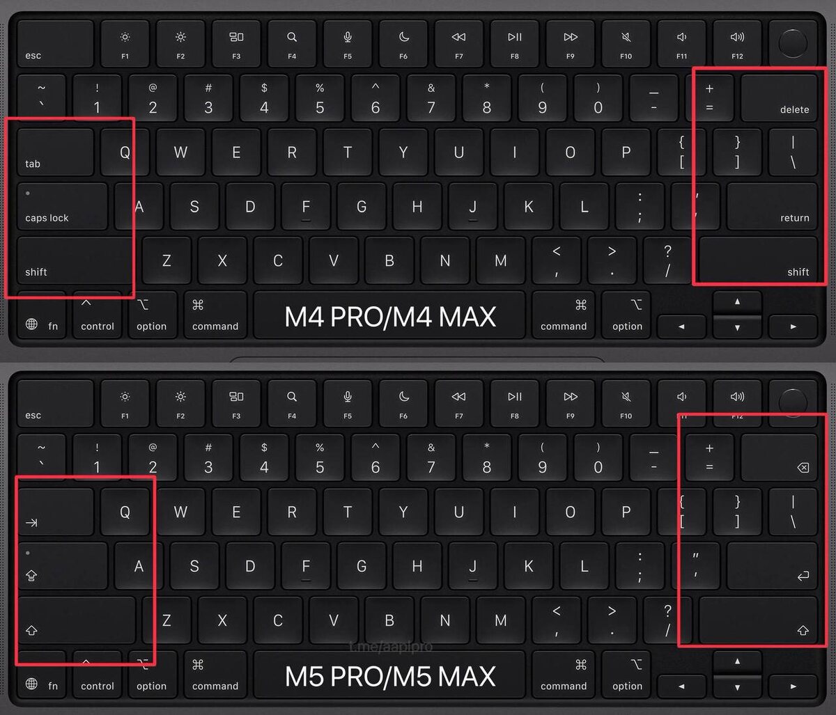 ) В обновлённых версиях MacBook Pro на M5 Pro и M5 Max компания заметно «почистила» клавиатуру — часть текстовых подписей исчезла. Остались в основном пиктограммы. Shift и Caps Lock теперь выглядят максимально минималистично, почти одинаковые по стилю. Никаких лишних надписей — только символы. Можно интерпретировать по-разному: 1. Минимализм ради дизайна. 2. Ставка на «профессиональную» аудиторию. 3. Желание унифицировать клавиатуру визуально. Есть ощущение, что в Купертино исходят из простой логики: если вы покупаете ноутбук за несколько тысяч долларов, вы и так знаете раскладку наизусть. Это мелочь, но показательная. Apple постепенно двигается к идее «инструмента для своих» — где интерфейс становится более лаконичным, а пользователь должен быть чуть более подготовленным. Интересно, заметят ли это большинство или обсуждать будут только техно-гики. 💬 @Mikhaylov_Review