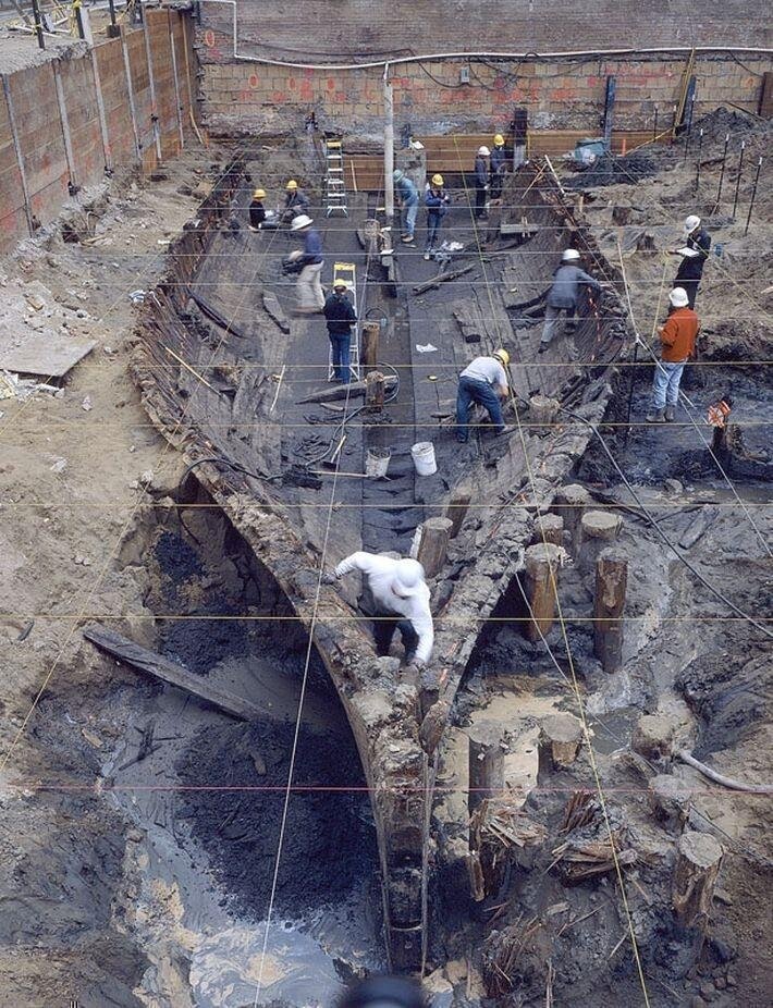 При строительстве метрополитена в Сан-Франциско и при других строительных работах в начале XX века среди улиц города начали находить остатки деревянных судов XIX века. Вот цитата и вырезка из газетной статьи 1925 года, в которой пишут, что на углу улиц Saсramento и Battery было найдено судно Apollo: "...Среди гниющих пород судна были найдены монеты 1840 года, американский цент 1825 года, британская монета 1797 года, трубы, большой золотой самородок, секстант , корабельные фитинги и прочие предметы, которые радуют тех, кто любит редкие вещи." Находки судов делали вплоть до конца XX века. Например, в 1980 году, при строительстве станции метро Кинг-Стрит, было найдено китобойное судно Lydia, а в трюме судна обнаружили 24 бутылки высококлассного на то время имбирного пива. В сентябре 2001 года, при закладке фундамента 11-ти этажного отеля, было обнаружено судно "Генерал Харрисон". Все эти найденные деревянные суда не стали извлекать, но нанесли все находки на карту. Как так получилось, чт