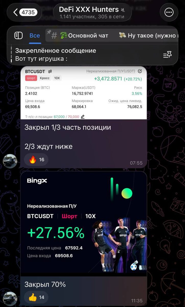 ) 1/3 позиции закрыта. Потом ещё 70% зафиксировано. Спокойно. По системе. Без хаоса. Пока толпа спорит в комментариях - Хантеры фиксируют результат. Это не «угадал повезло». Это стратегия, риск-менеджмент и чёткие действия внутри закрытого чата. ⚠️ Вход в ЧАТ ХАНТЕРОВ сейчас по специальным условиям. Они действуют еще 4 дня 👨💻 Дальше цена возвращается обратно. Места не резиновые. Кто хотел «зайти позже» - позже будет дороже. ВСТУПИТЬ