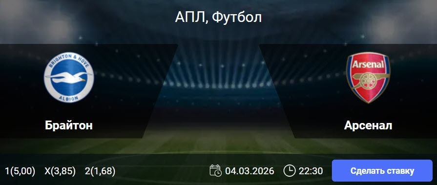 Брайтон - Арсенал: АПЛ 29-й тур чемпионата Англии (04/03/26/22:30