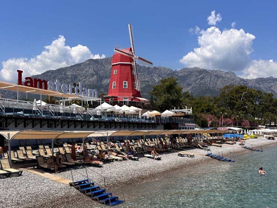 Маленький Амстердам в центре Кемера. Раньше это был один из самых громких и тусовочных party-отелей Турции. Сейчас концепция официально семейная, и днём стало спокойнее: у бассейнов можно встретить и детей, и семейные пары. Но анимация тут по-прежнему очень активная.