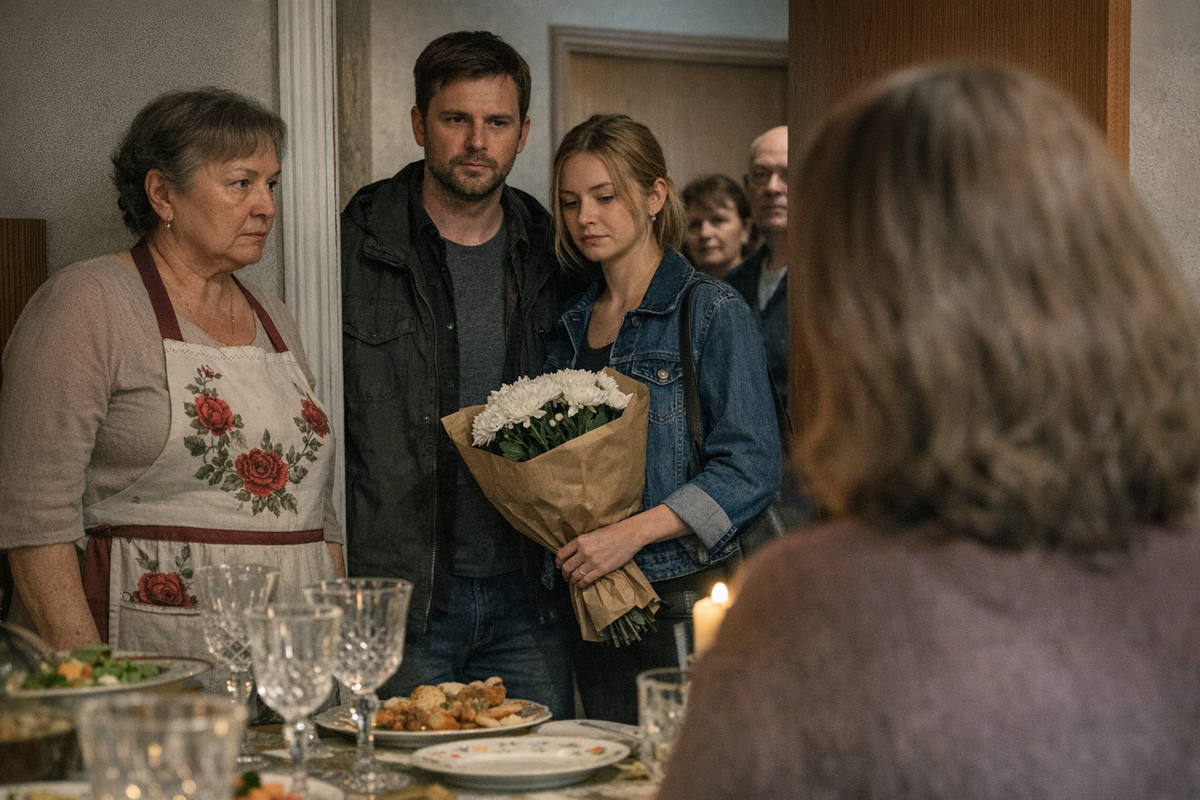 Он стоял у порога в своей серой куртке, которую я сама выбирала два года назад. Рядом с ним - девушка. Лет двадцати пяти, не больше. Светлые волосы собраны небрежно, маленькие серьги-гвоздики, джинсы в обтяжку. Она держала букет - белые хризантемы, обёрнутые в крафт. Хороший букет. Кто-то выбирал с умом.