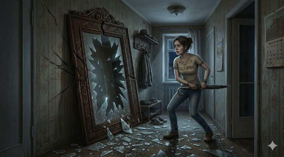 Я смотрела в зеркало, но надпись «CALIFORNIA» на моей груди читалась... слева направо. Прямо. Буква к букве. Текст не был отзеркален.