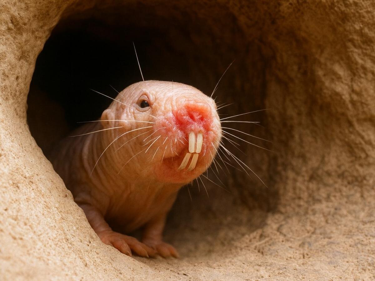 В животном мире есть негласное правило: «Милый внешне — мил внутри». Но природа решила сломать этот стереотип, создав существо, которое выглядит как сосиска с зубами, но при этом обладает суперспособностями, о которых мечтает человечество. Это голый землекоп. Он живет в подземных туннелях Восточной Африки и, возможно, является самым удивительным млекопитающим на планете. Мы привыкли, что животные стареют: у них выпадает шерсть, слабеют конечности, падает иммунитет. Голые землекопы же, кажется, заключили сделку со смертью. Ученые обнаружили, что риск смерти у них не увеличивается с возрастом. Если мышь в возрасте 2 лет имеет огромный шанс умереть, то землекоп в 2, 10 или 30 лет имеет одинаковые шансы пережить следующий день. Их белки не разрушаются со временем, как у нас. Они практически невосприимчивы к раку — заболевание было зафиксировано буквально у пары особей за всю историю наблюдений, и то в зоопарках. Если бы люди обладали их биологией, мы могли бы жить сотни лет, сохраняя здоро