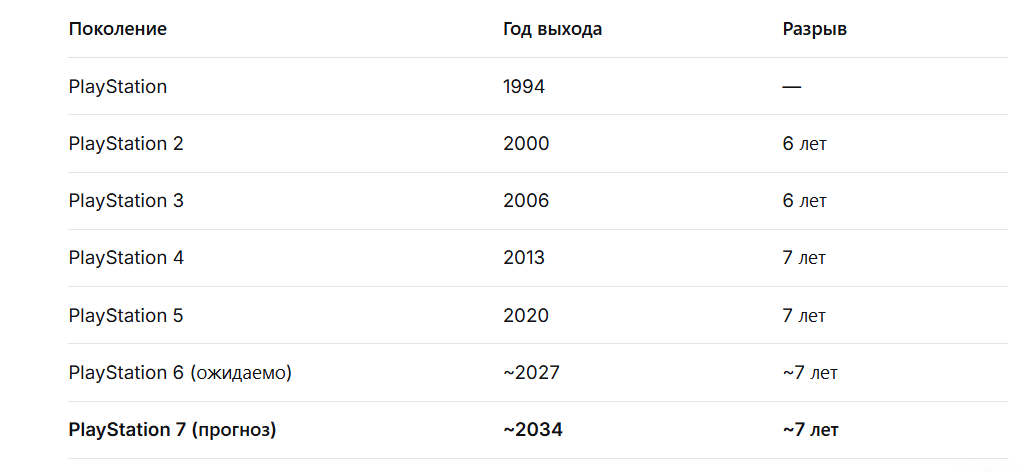 Чтобы понять, когда выйдет PlayStation 7, давайте посмотрим на историю: