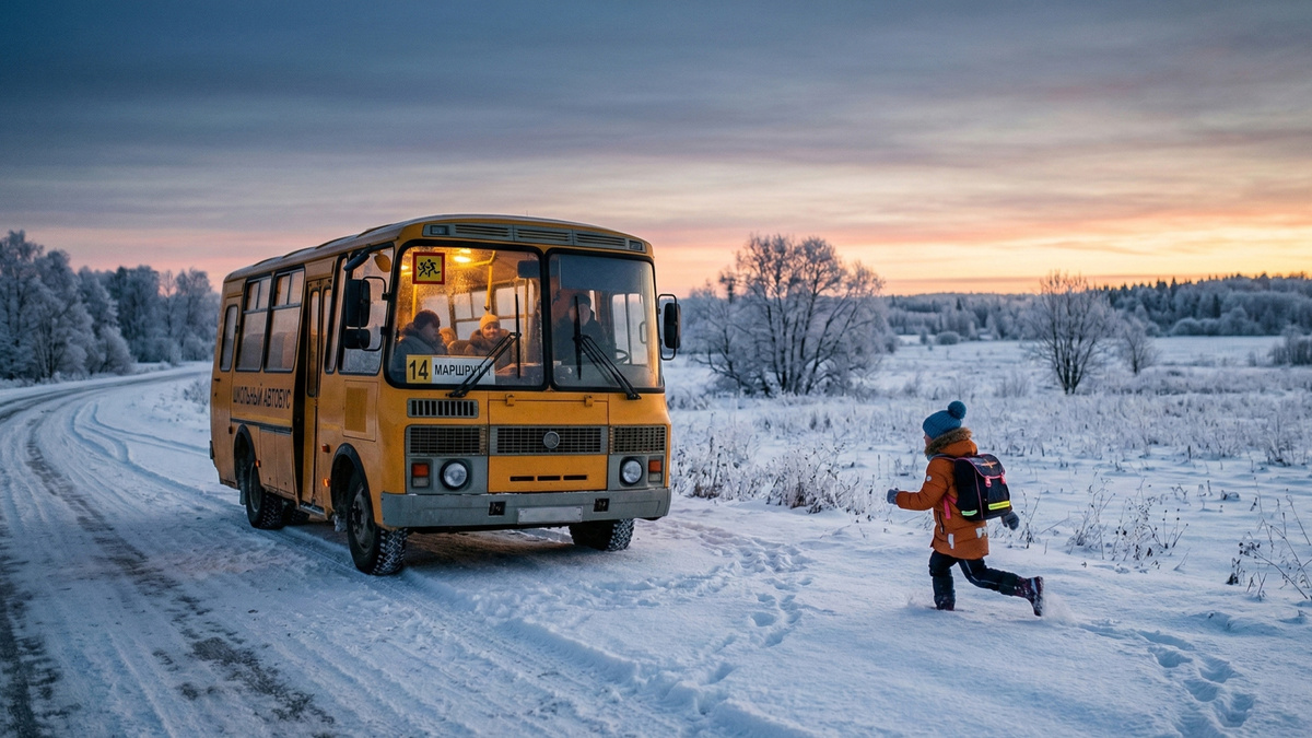 Сначала появилась она. Из-за поля, по тропинке, которую протоптали за зиму. Портфель на спине. Куртка застёгнута. Шапка ровно. Весна. Она подошла к столбику и встала рядом. Как все. Как пассажир на остановке.