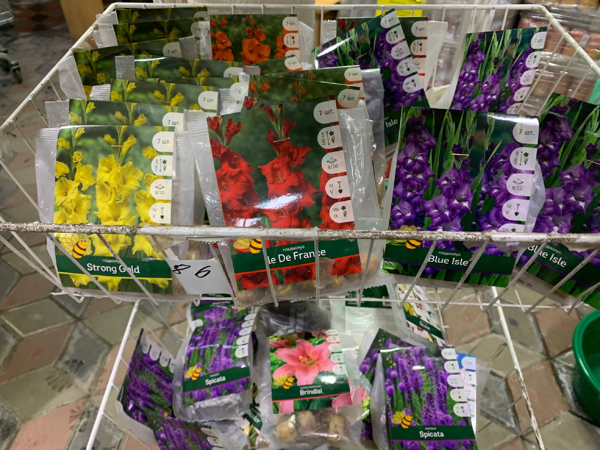 Привезли луковичные цветы. Гладиолусы и Лилии. Гладиолусы по 7 штук в упаковке, лилии по 3 луковицы в упаковке.