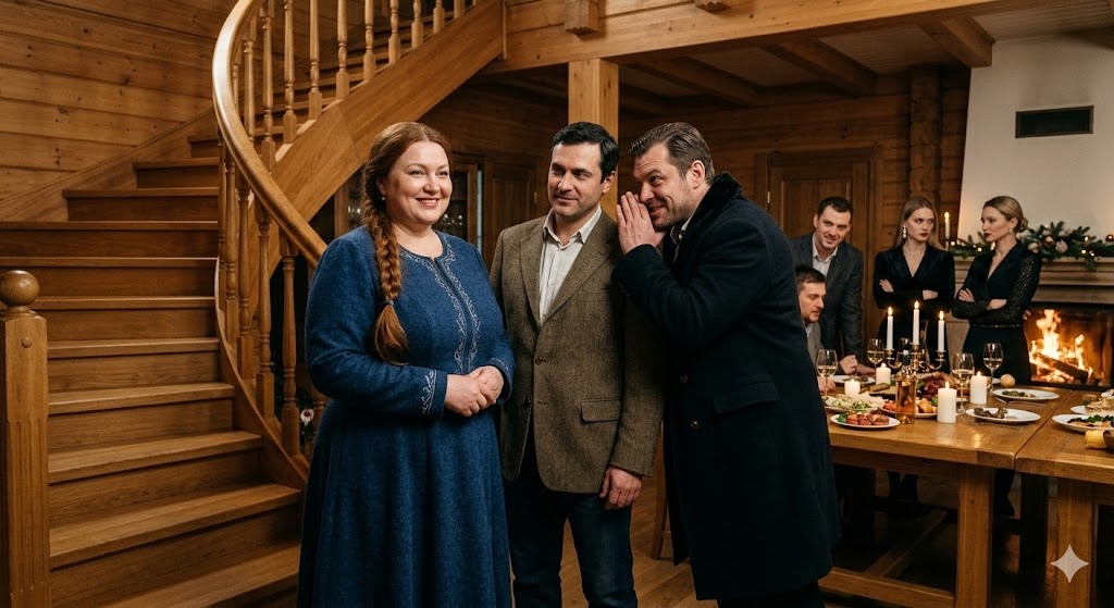 В зале повисла неловкая тишина. Спутницы гостей переглянулись, едва скрывая презрительные усмешки, скользя взглядами по полнотелой фигуре хозяйки. Вадим и Игорь тоже замерли, явно опешив. Они ожидали увидеть кого угодно: молоденькую глупышку, расчетливую красавицу или властную горожанку, но только не эту простую, пышную женщину, похожую на ожившую картинку из старинной сказки.