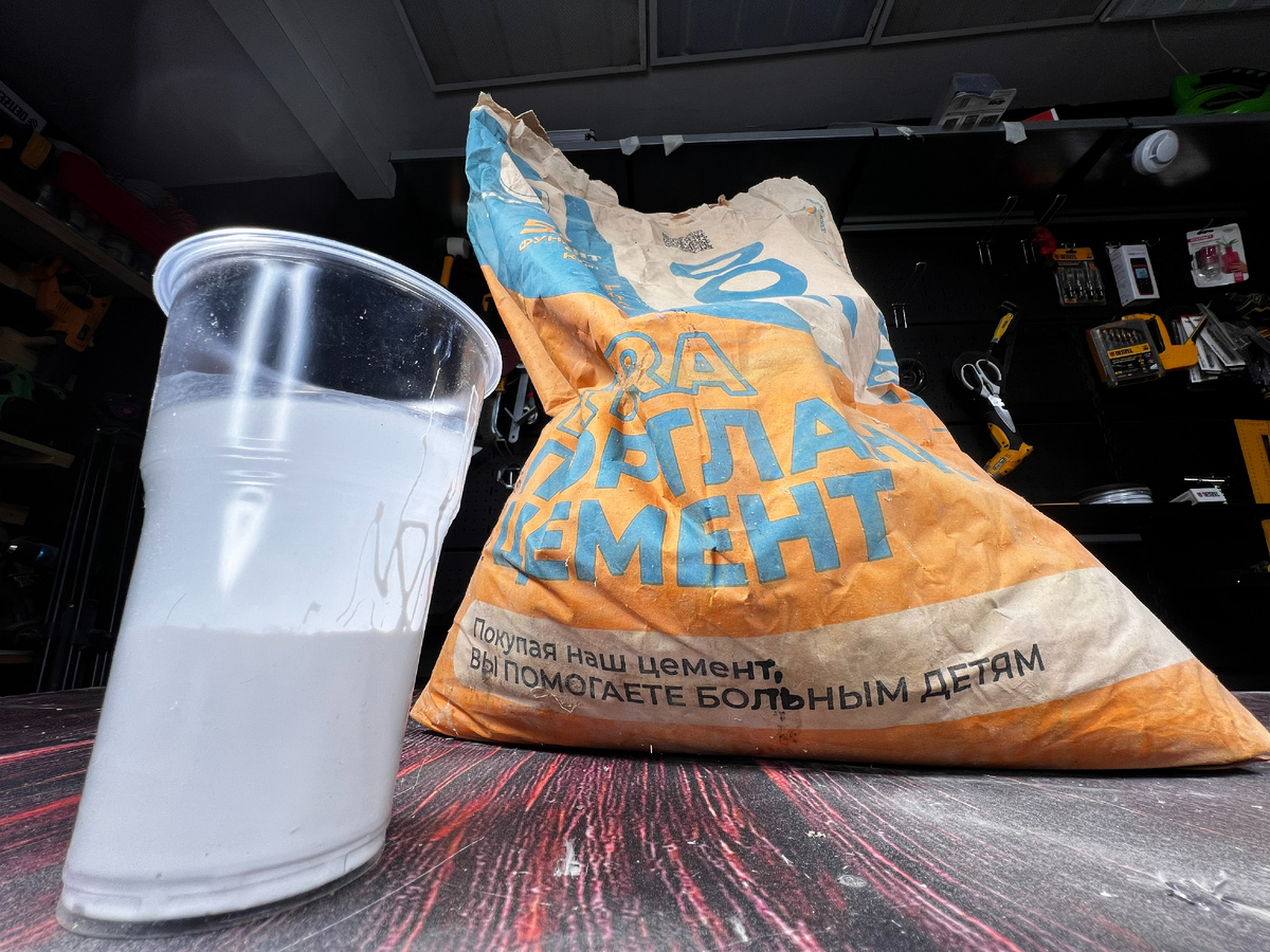 Иногда листаю старые советские журналы, не бумажные, конечно, а цифровые архивы. Удивительно, как в те времена люди находили решения, которые сегодня кажутся почти изобретательством на грани физики и химии. Наши отцы и деды не могли просто пойти в магазин и купить готовое, им приходилось быть и мастерами, и экспериментаторами, и домашними инженерами. Они создавали решения своими руками, из подручных материалов, и часто эти решения служили годами. Кстати, метод с цементом, тот самый, забытый, но проверенный временем, по-прежнему может быть актуален и сегодня. Я говорю это без преувеличения: простые решения иногда работают лучше сложных технологий. Итак, что мы делаем, наливаем в пластиковый стакан клей ПВА и воду, пропорции 1:1 (воды чутка поменьше можно, как показала практика) Теперь, тщательно размешиваем клей и воду. Далее через ситечко пропускаем цемент. Добавляем цемент в стаканчик и перемешиваем, я делал все на "глаз" Чтобы получилась вот такая масса, похожая на густую сметан