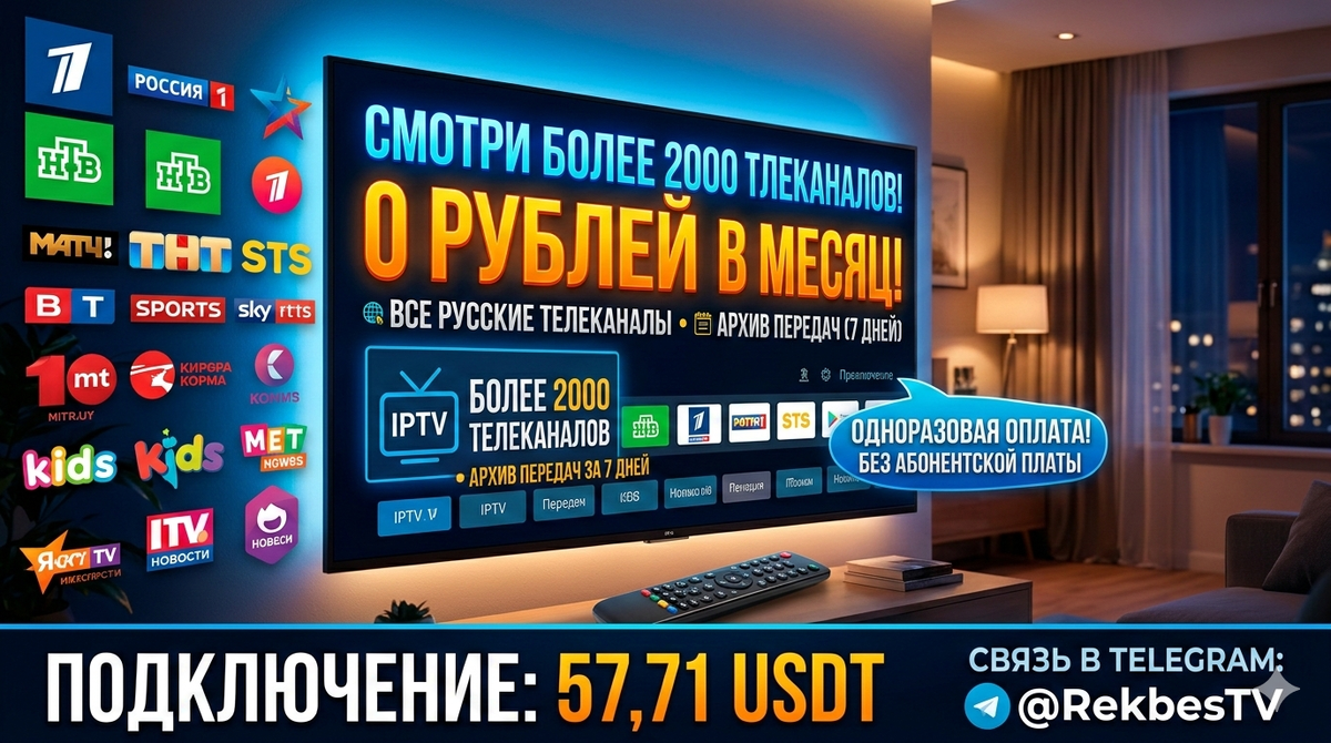 Подключение к IPTV открывает новые горизонты домашнего досуга. Более 2000 телеканалов за 0 рублей в месяц на любых устройствах — это реальность, доступная уже сегодня. Рекомендуем воспользоваться предложением RekBestV и оценить все преимущества современного IPTV-сервиса.