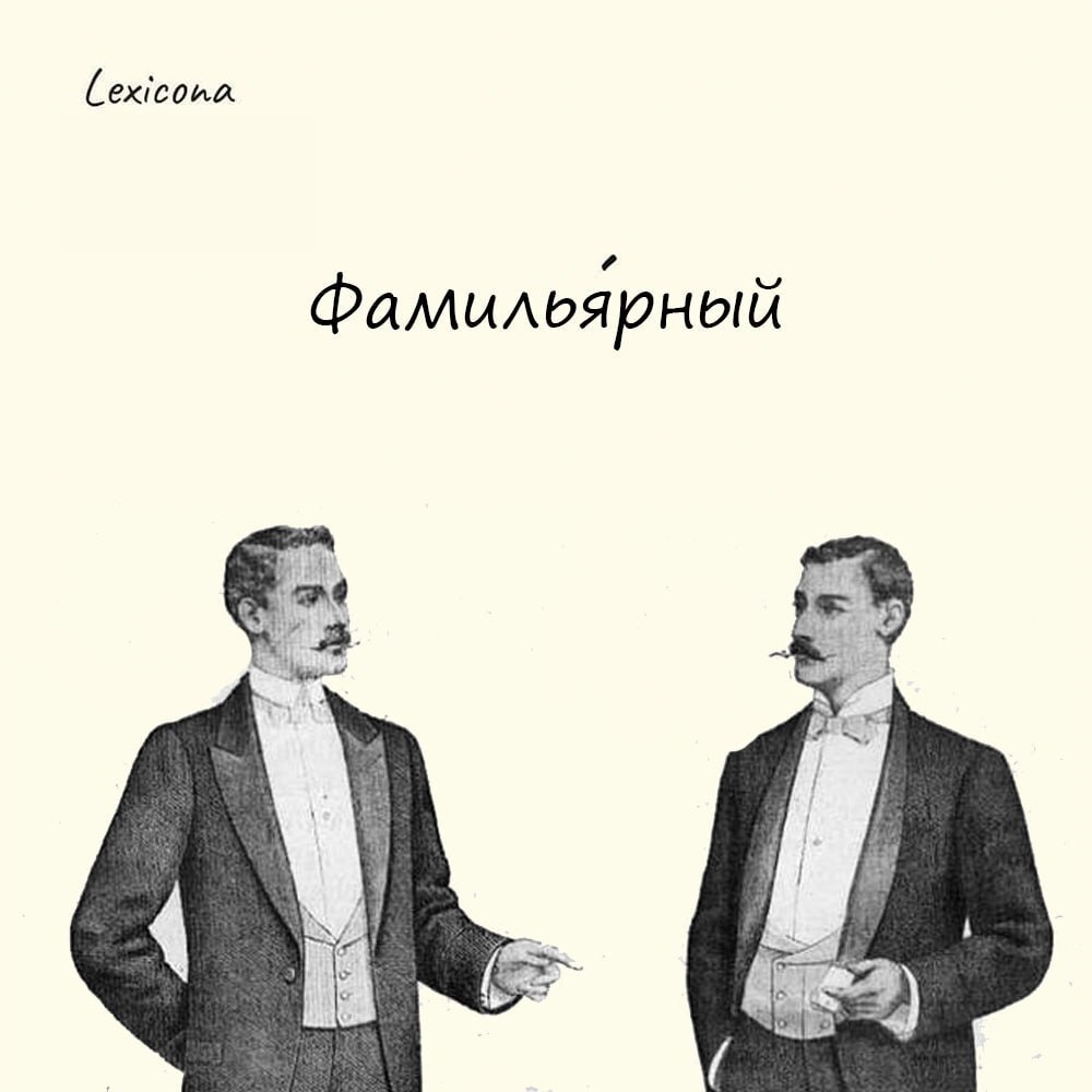 Слово пришло в русский язык из французского — familier, что означает «свойский», «близкий», «неформальный» Фамильярный стиль общения имитирует неформальное общение, принятое между близкими людьми, когда это неуместно. Для него характерно равноправие собеседников и свободный выбор используемых слов. В XVIII–XIX веках это чаще имело негативный оттенок: фамильярность ассоциировалась с нахальством, неуместным приближением к высшим сословиям. Один из признаков фамильярности — обращение к собеседнику на «ты».