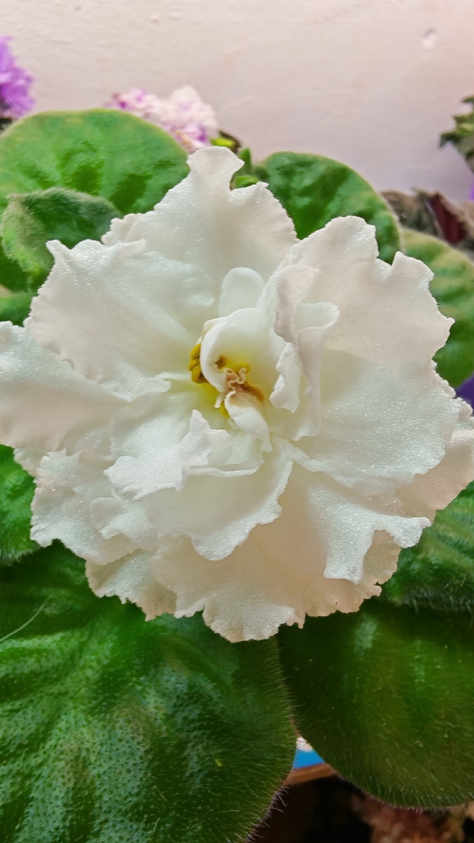 Розетка у красавицы Harlequin довольно необычная: листья жёсткие и плотные, нуждаются в повышенном уровне освещения и даже повышенном прикорме, что не удивительно: ведь цветы у фиалки просто огромные, чтобы распустить такую красоту нужно хорошо