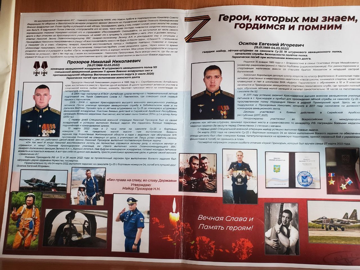 … 4 марта 2022 года из боевого вылета не вернулся майор Евгений Осипов. Его Су-25 с бортовым номером "04" был сбит в Киевской области. Евгений Игоревич катапультировался и принял бой на земле, в ходе которого погиб как Герой, повторив подвиг своего сослуживца Романа Филипова. А 10 марта был сбит штурмовик Су-25 с бортовым номером "10" гвардии майора Николая Прозорова. Практически, сразу после взлёта он увидел, что его взяла на прицел и облучает вражеская РЛС, но принял решение продолжить работу. Офицер выполнил задачу до конца, после чего был сбит. Николай Николаевич и Евгений Игоревич были близкими друзьями. Удивительное совпадение судеб и чисел трогает до глубины души и никого не оставляет равнодушным. Вечная память Героям! На пределе🔥