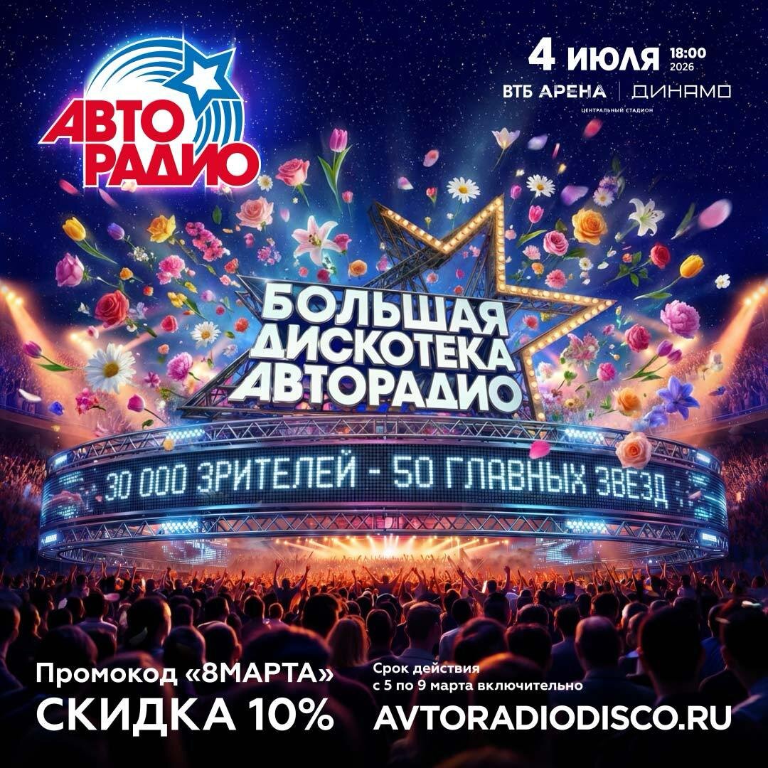 БИЛЕТ - лучший подарок! 👠 Жене, подруге, сестре, маме, тренеру, тёще, твоей бывшей, массажисту и всему женскому коллективу в твоём отделе — Большая Дискотека Авторадио понравится всем! 50 топ исполнителей и 100 главных хитов на огромной ВТБ арене! 🛍 И чтобы покупка была приятнее, праздничный промокод 8МАРТА дает скидку 10% при оформлении билетов на официальном сайте avtoradiodisco.ru (c 5 по 9 марта) 🎁 Парни, порадуйте своих девчонок! Девчонки, репост парням)