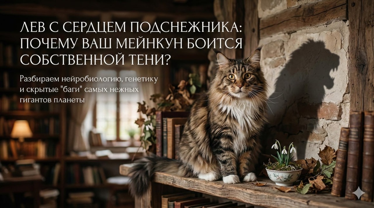 Ко всему, их мозг работает в режиме «лучше перебдеть». Из-за особенностей селекции (например, гена PAX3 у голубоглазых особей) их нервная система может медленнее обрабатывать сигналы среды. Пока обычный кот уже забыл о резком звуке, мейн-кун всё еще находится в режиме «выживания». Это не трусость — это встроенная система безопасности.