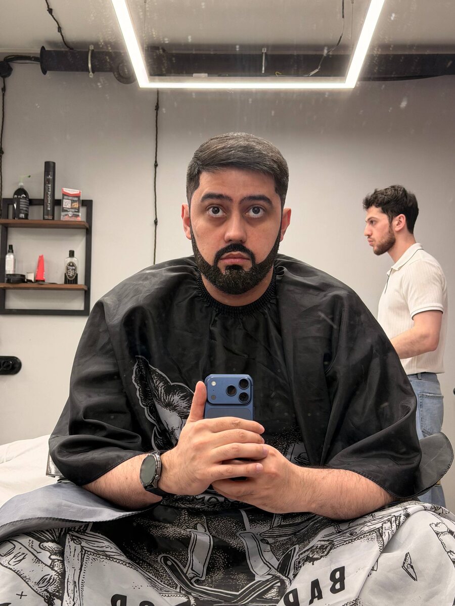 Доля седины в бороде составляет 35%. Как только доля вырастет до 51% все будет перекрашено в цвет владельца контрольного пакета, седой. Дней , когда барбер не спрашивает как вести свой аккаунт в социальных сетях - 0. К слову, крутой тип! Неожиданно - туркмен. Туркмены очень редко выезжают работать в Россию. Там, соответственно, Голливудская история как уехал, как добился. Так 2 часа и прошли