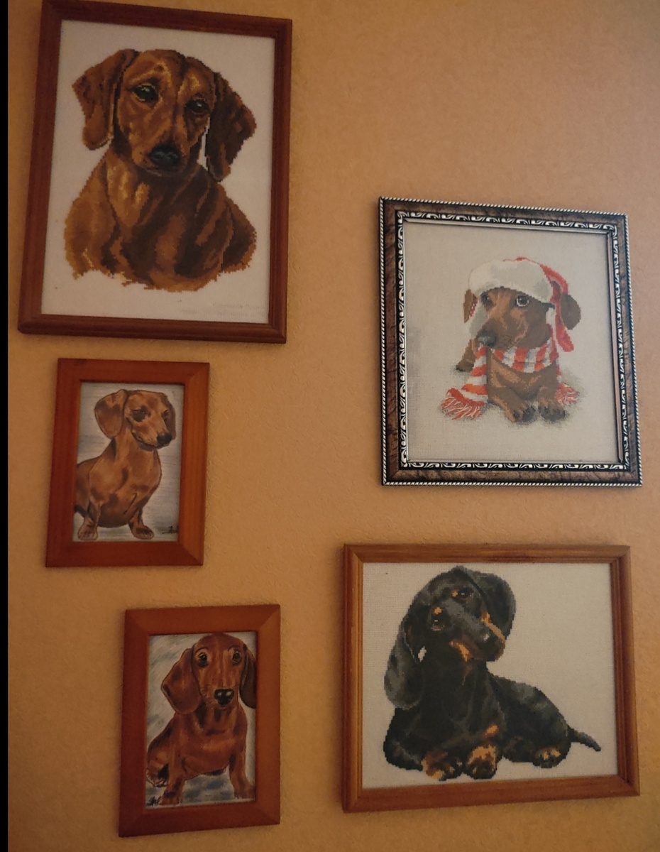 Вышивать я полюбила давно, лет, наверное, 20 назад. Первыми были таксы, я пополняла свою коллекцию.
