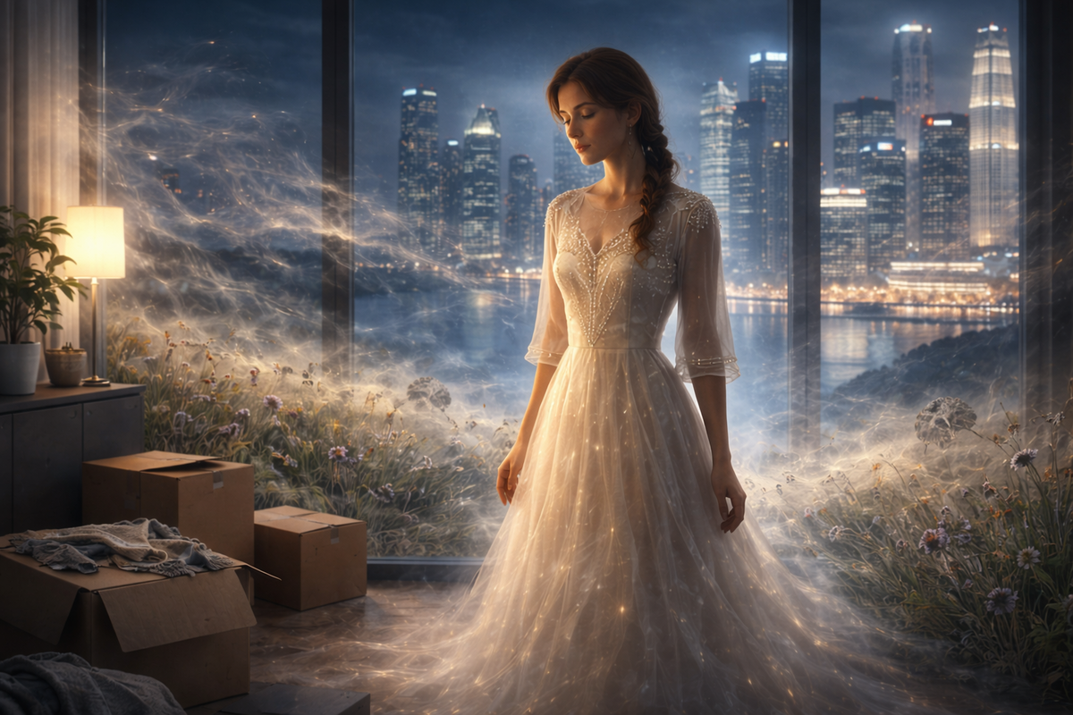 Лена повесила трубку и долго смотрела на платье, разложенное на диване. Оно сияло в лучах сингапурского солнца, переливаясь жемчугом и серебром, и было самым красивым, самым родным, что у нее было в этом далеком городе.
