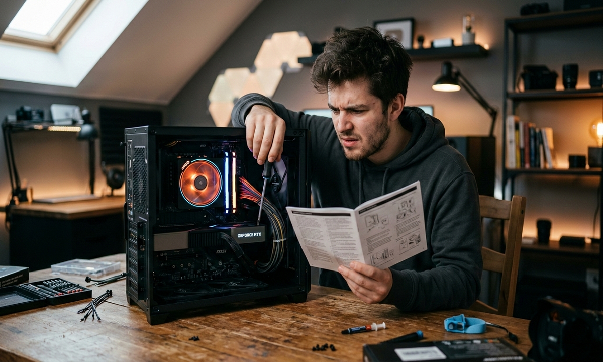 Вы потратили несколько часов на сборку, с трепетом нажали кнопку питания, но... ничего не произошло. Или вентиляторы закрутились, но экран остался черным. Не паникуйте! В 90% случаев проблема не в бракованном железе, а в досадной мелочи, которую вы упустили из виду. Разберем хит-парад ошибок, с которыми сталкивается почти каждый начинающий мастер. Самая смешная и самая частая ошибка. На задней панели блока питания есть переключатель «I/O». Проверьте, чтобы он стоял в положении «I» (Вкл). Без этого ток просто не пойдет в систему. Многие втыкают огромный 24-пиновый кабель в материнскую плату, но забывают про отдельный разъем сверху, возле процессора. Без него «мозг» компьютера не получит энергию, и система не запустится. Если у вашего процессора нет встроенного графического ядра, при подключении кабеля HDMI/DisplayPort к материнской плате вы увидите только черный экран.