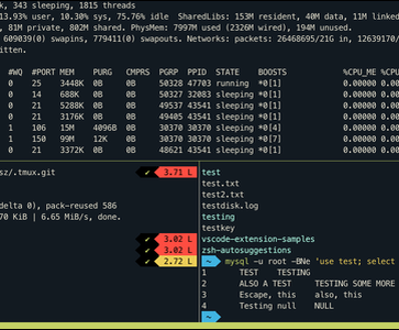 Соберите “под себя” такой tmux-дэшборд, чтобы всё было под рукой. После установки tmux просто запустите его командой: