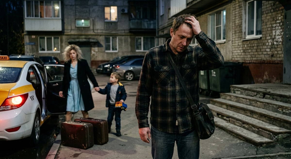 Я подошёл к окну. Она стояла на улице с двумя чемоданами, Димка рядом, маленький, растерянный, сжимающий в руке какую-то игрушку. Потом они сели в такси и уехали.
