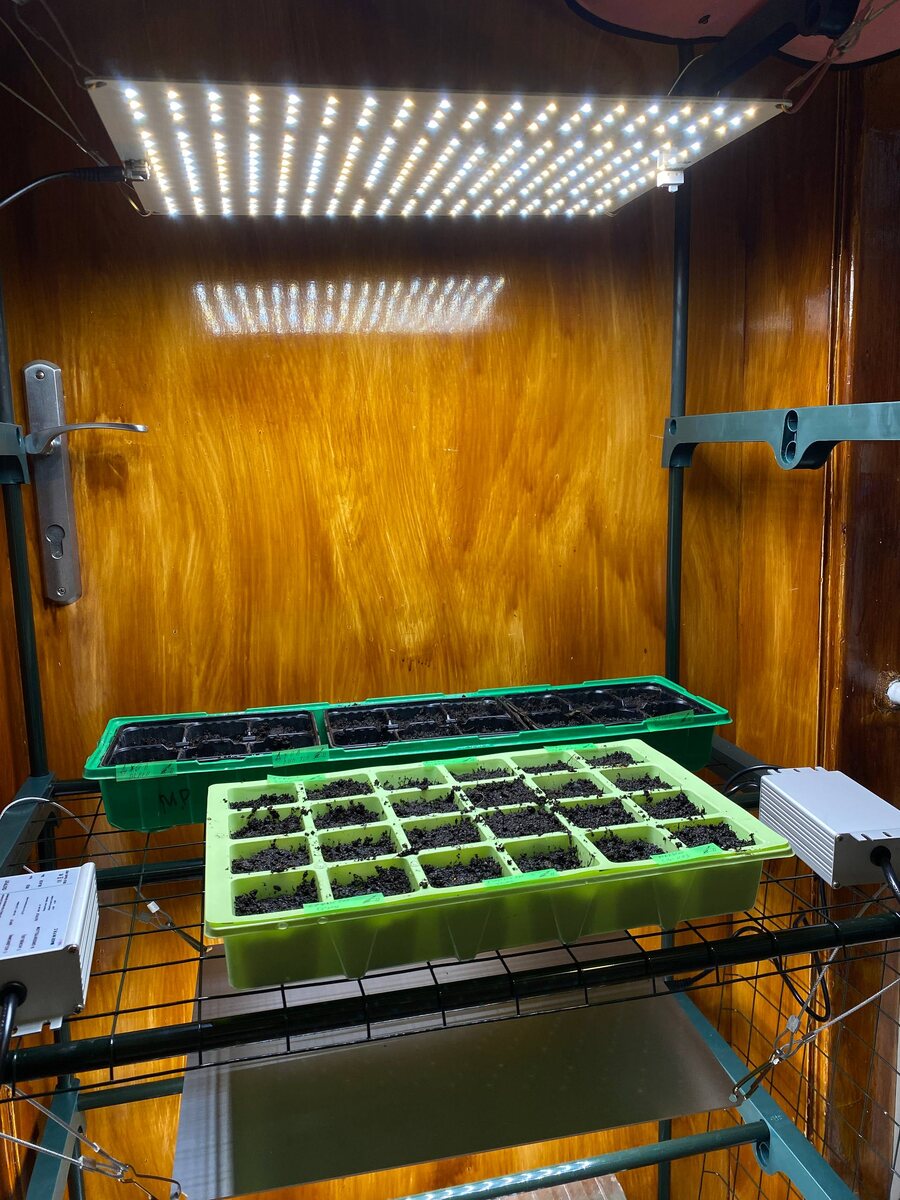 Сад мечты с Дариной День 1. Посадили. Выращиваем #цветы чтобы жизнь была веселее. Заказали в РФ семена: петуний, гвоздик, георгин, вербен. Суммарно на 3500 рублей. Купили 2 led борда по 100 Вт (около 10000 динар), небольшой шкаф на 2 этажа (5000 динар). Земля обычная. Вермикулит. (Около 2000 динар) Хотим вырастить, чтобы украсить Сушибокс живыми цветами.
