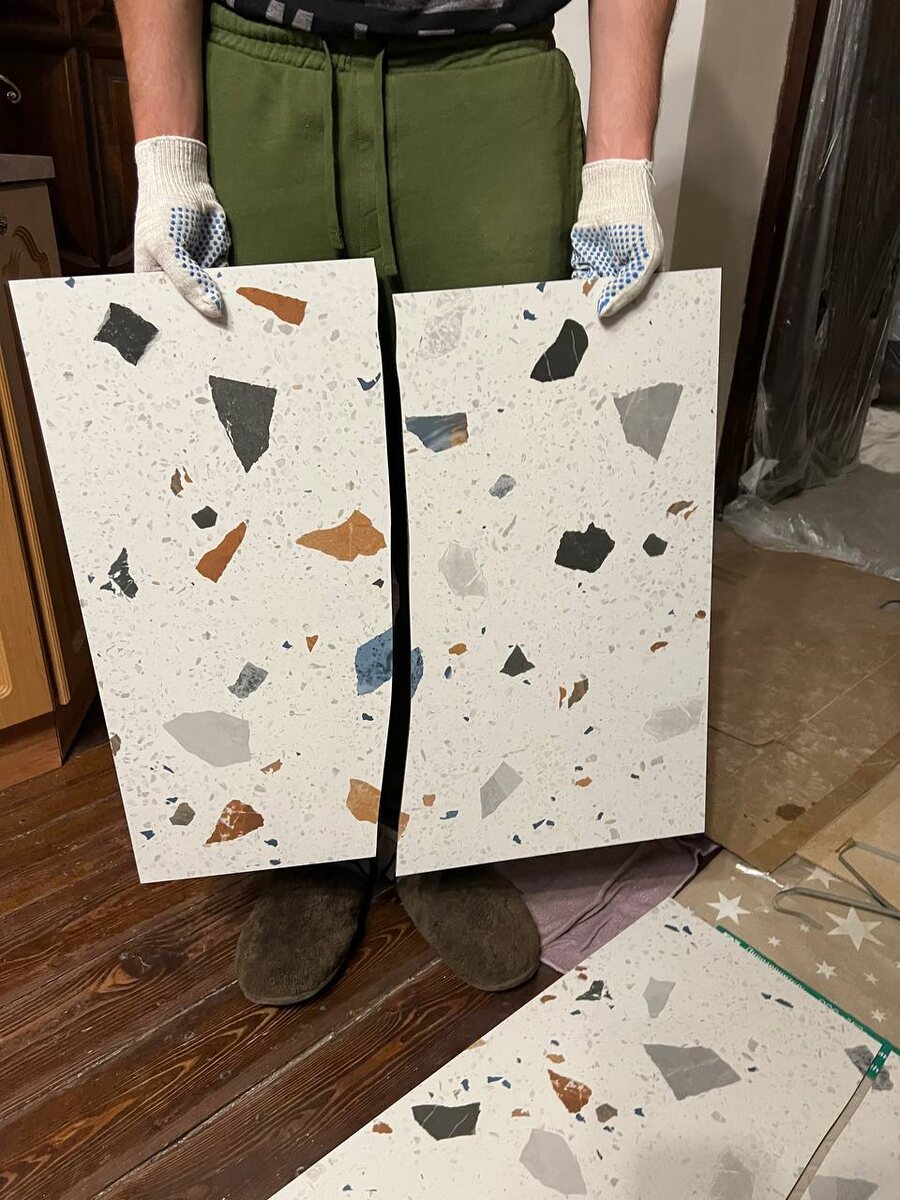 🚨 Стали смотреть плитку на разнотон, искали медь, а нашли золото🙃 2 из 7 пачек с треснутой плиткой 🔴 Жалоба уже написана, надеюсь, все без проблем поменяют, потому что точно не наш косяк
