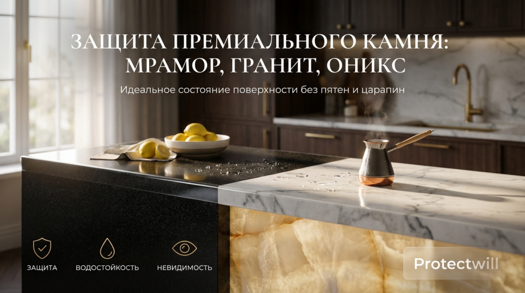 Но есть и другой сценарий. Камень остается таким же идеальным, как в день установки, даже спустя 5 лет активной готовки. Секрет не в магии, а в технологии, пришедшей из Японии. Давайте разберем, как защита камня пленкой Protectwill работает на разных породах — ведь мрамор, гранит и оникс «болеют» по-разному, и лечить их нужно по-разному.