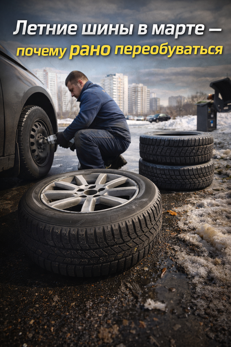 Каждую весну одна и та же картина: как только выглянуло солнце и снег начал таять — очереди в шиномонтаж. Люди снимают зимнюю резину чуть ли не в феврале. И почти все делают это не вовремя. Разбираемся, почему это опасно и когда на самом деле нужно переобуваться. Главное правило, которое все знают — но мало кто соблюдает Переходить на летние шины можно только тогда, когда температура стабильно держится выше +7°C — днём и ночью. Не «иногда плюс десять днём», а именно стабильно. Это не просто рекомендация — это физика. Летняя резина сделана из более жёсткого состава. При температуре ниже +7°C она буквально дубеет — теряет эластичность, перестаёт нормально цепляться за дорогу и тормозной путь увеличивается на 20–30%. Ты едешь на летних шинах и думаешь, что всё нормально — а машина тормозит как на льду. Почему март — почти всегда рано В большинстве регионов России март — это обманчивый месяц. Днём +8, солнце, сухой асфальт. А ночью — минус пять и тонкая ледяная корка на дороге утром. Именн